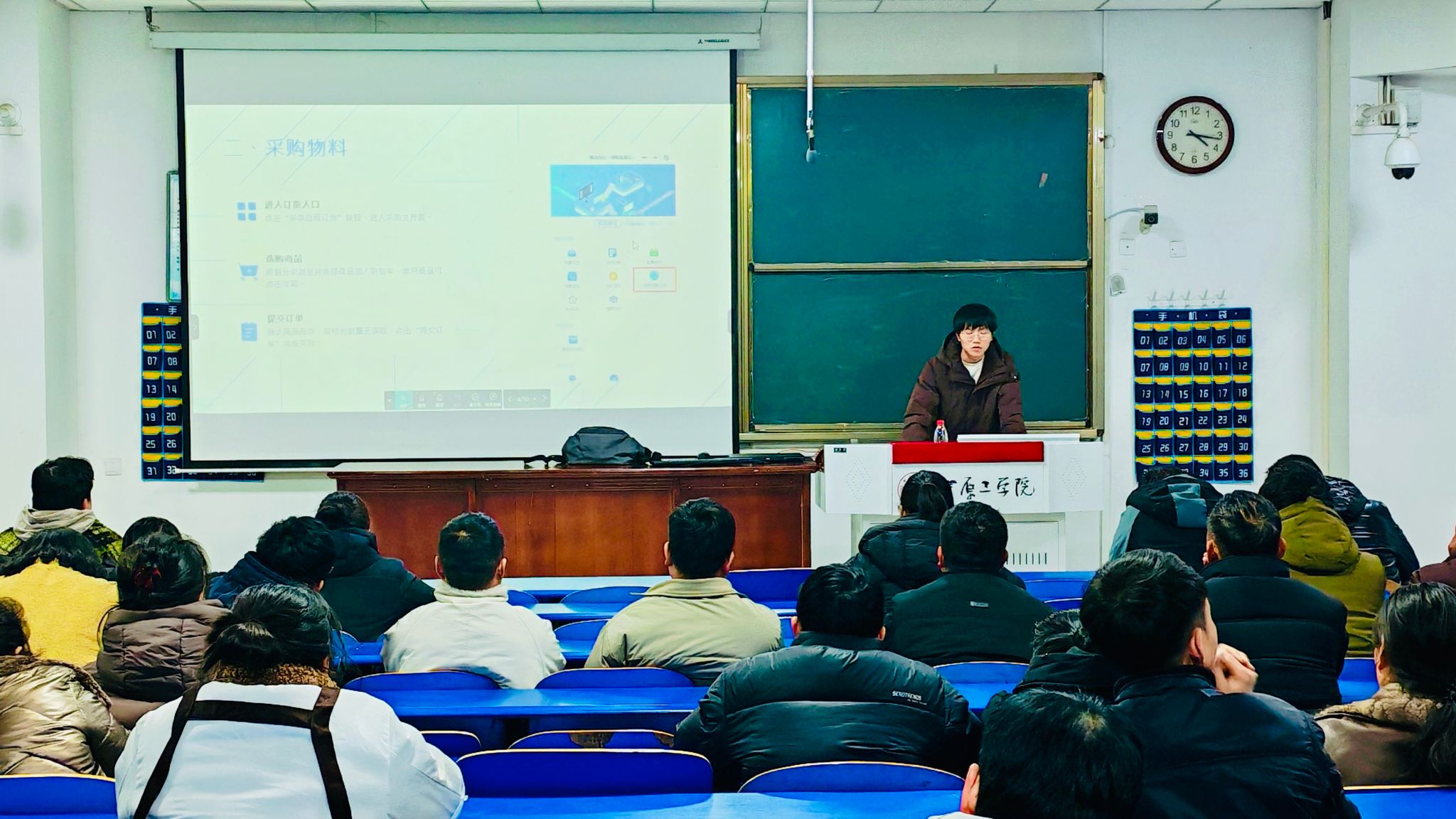 培训紧密结合春季校园餐饮保障工作实际,以压实安全责任、规范操作流程、提升防控能力为目标,围绕食品安全、燃气安全、消防安全、原材料采购系统四大模块开展精准教学。聚焦食堂运营关键环节,围绕食材采购查验、加工制作等细节进行说明;结合燃气与消防安全工作实际,着重对隐患排查、应急处置展开专业讲解,引导全体人员从“要我安全”向“我要安全、我会安全”转变;同步开展采购系统实操培训,强化源头管控、过程监管、数据留痕一体化推进。